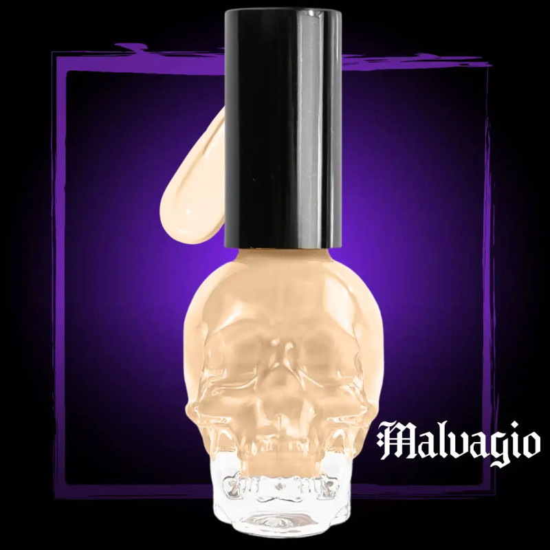 La Base Calavera Malagna combina cobertura, arte y actitud en un frasco icónico en forma de calavera.