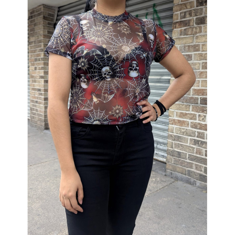 Top Cubano Mesh Telaraña/Cráneos